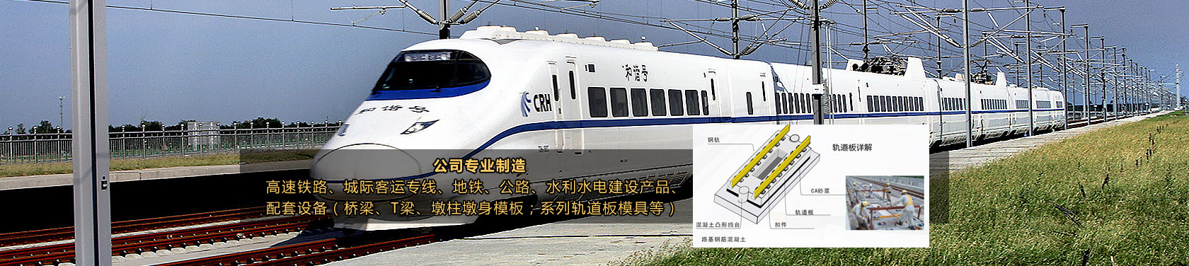 專業生產高速鐵路、城際客運專線(時速250km/h、350km/h)預制箱梁內、外模;CRTS I型、II型、III型板式無砟軌道板模具系列產品、雙塊式軌枕、地鐵軌道板模具及板場制板輔助設備;大型公路預制箱梁模以及相關鐵路、公路建設配套設備。